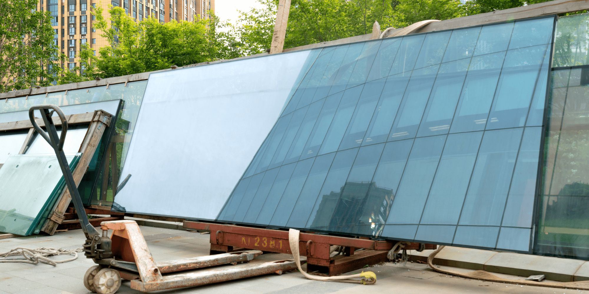 Cristales agrupados que se encuentran en una apiladora para ser transportados