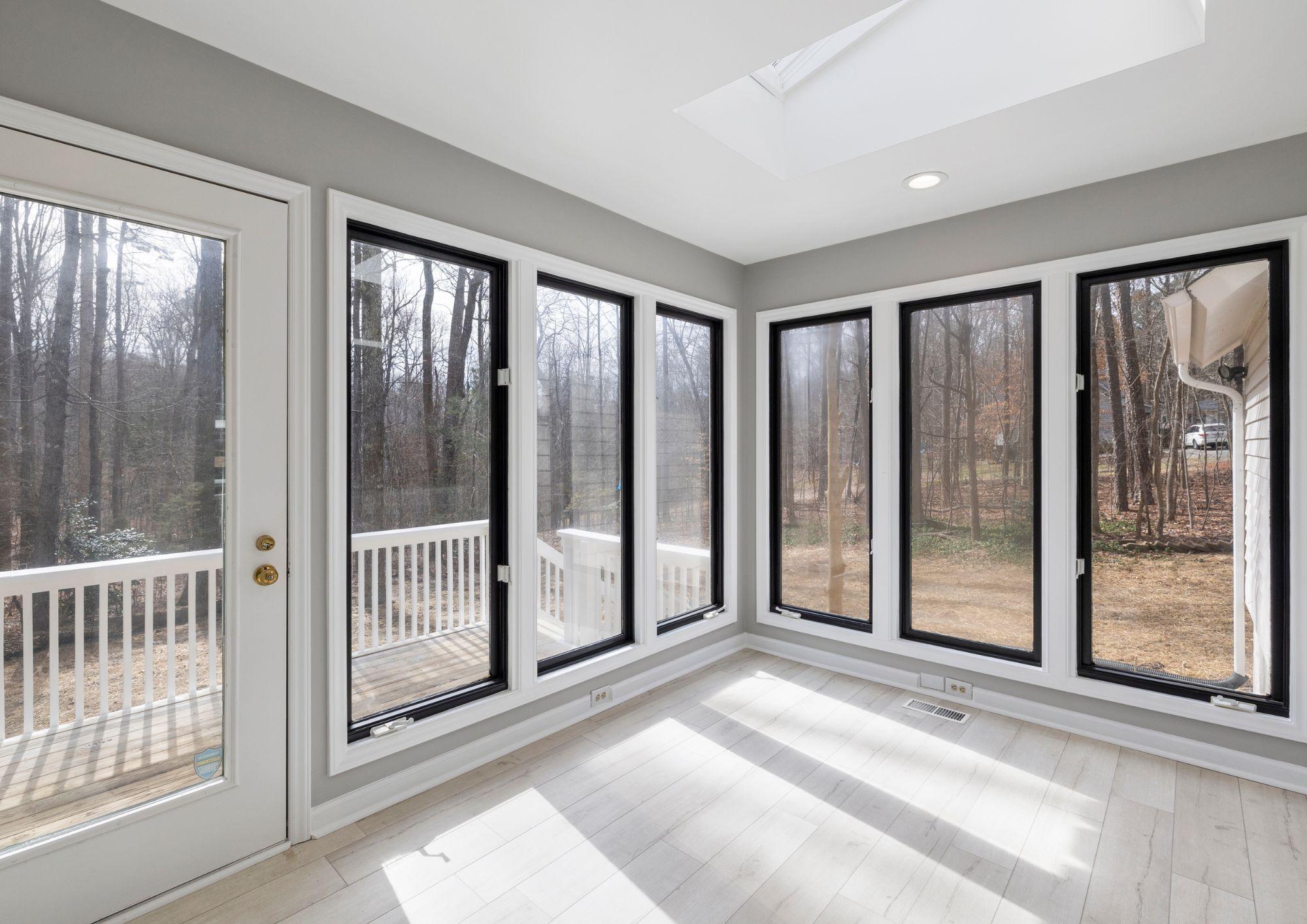 Cristales de una casa a medida recién instaladas donde se puede apreciar la luz solar y la energía que transmiten las ventanas