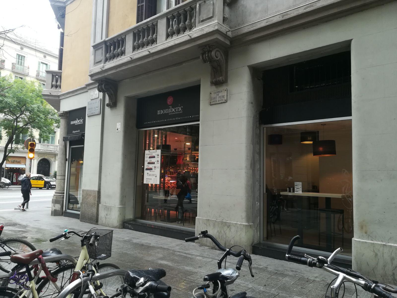 Escaparate de cristal de una tienda de paletas y jamones ibéricos
